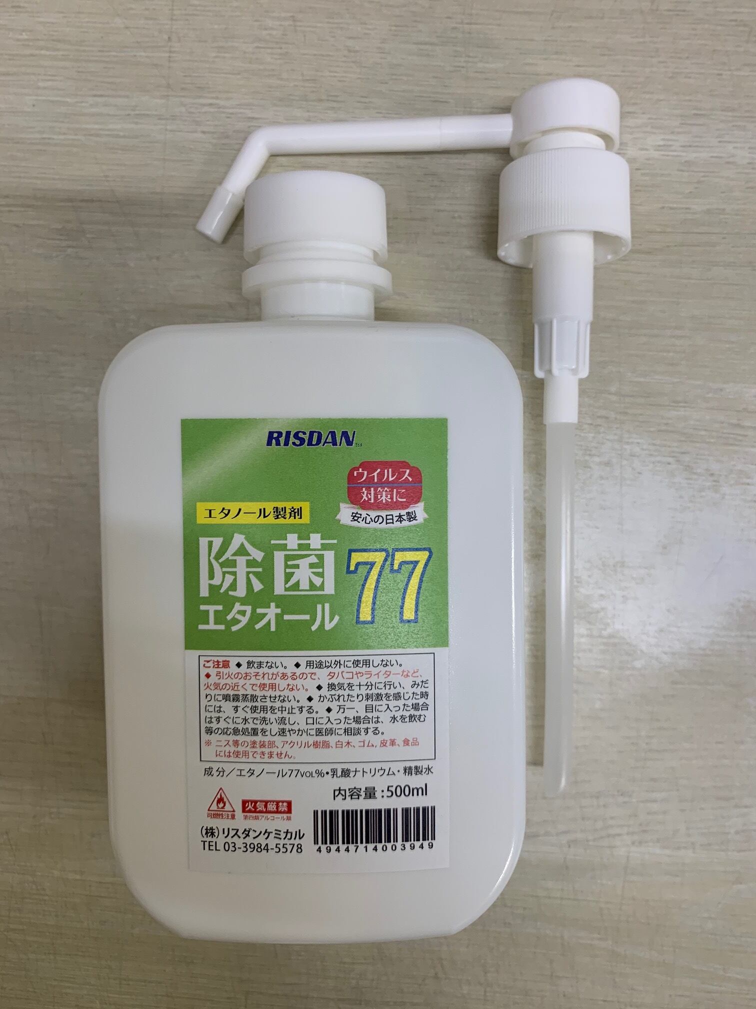 【成分】エタノール77vol%±2% 、IPA(イソプロピルアルコール)5%、グリセリン0.5%、精製水